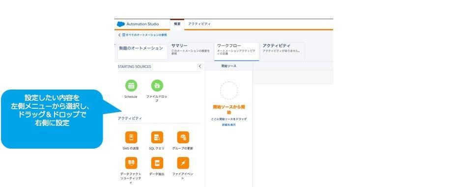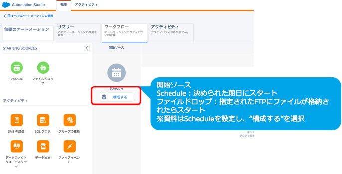 - 開始ソースを選択し右側の開始ソースへドラッグ&ドロップ(今回はScheduleで説明)