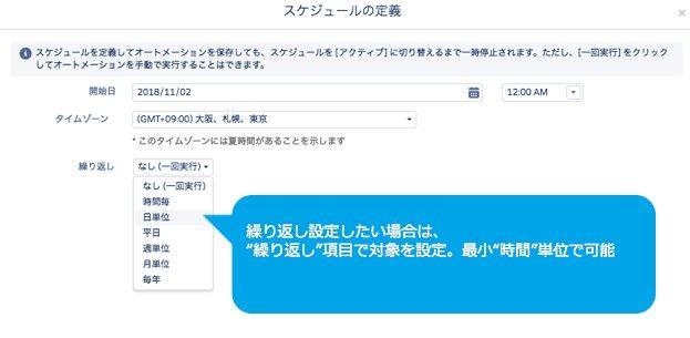 - 繰り返し:定期的にオートメーションを起動する場合に繰り返しのタイミングを設定