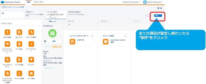 - 右上の[保存]をクリックし、オートメーション名などプロパティを設定