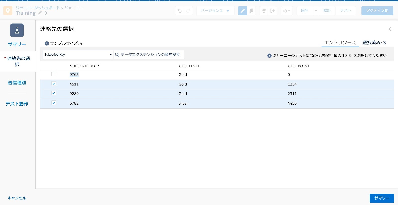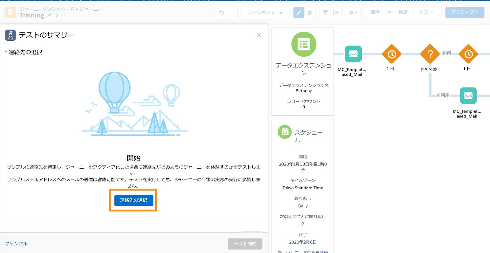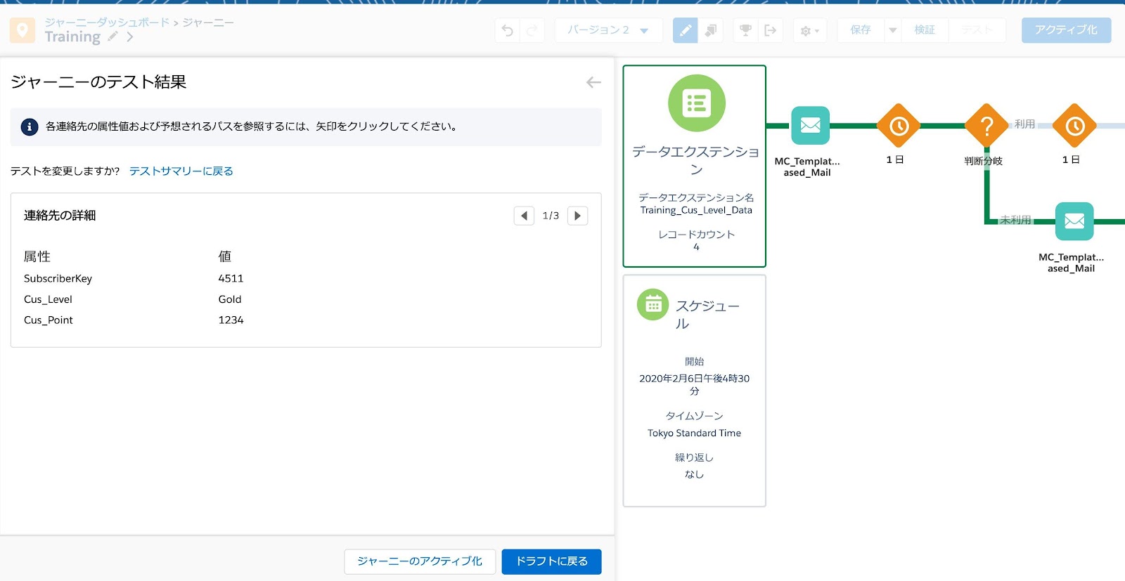 2.テスト機能で各コンタクトがジャーニーをどのように通過するかを確認する