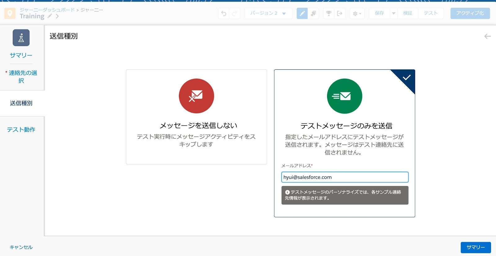 ※テスト用ジャーニーを作成しテストデータで挙動を確認することを推奨