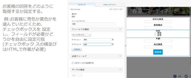 - ・ドラッグ&ドロップでアンケートページの作成が可能