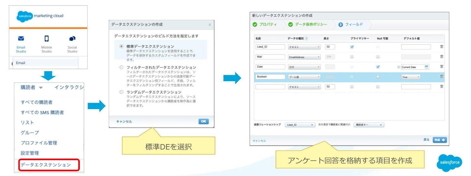 1. 回答格納用データエクステンション(DE)の作成@EmailStudio