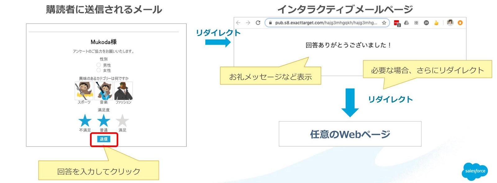 メールのSubmitボタンをクリックすると、Webページ(CloudPages)にリダイレクトされ、