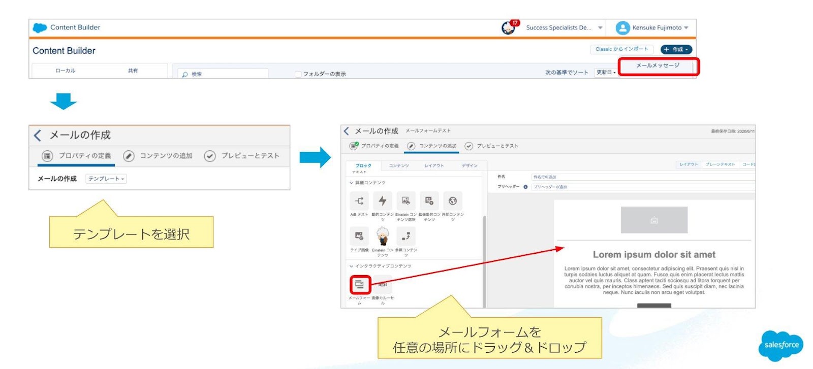 3-1. Content Builder で新規メールを作成し、メールフォームブロックを追加