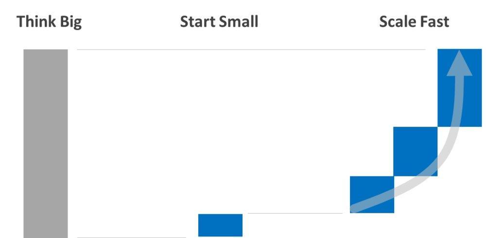 数年先の大きなビジョンを定めつつ、小さな課題解決からスタートし、それを拡張しつつ、早期に価値 (導入効果) を得る。