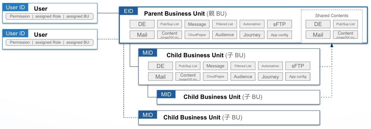 📌ユーザー / アカウント / ビジネスユニットの構成例 (Enterprise ID (EID) / Member ID (MID))