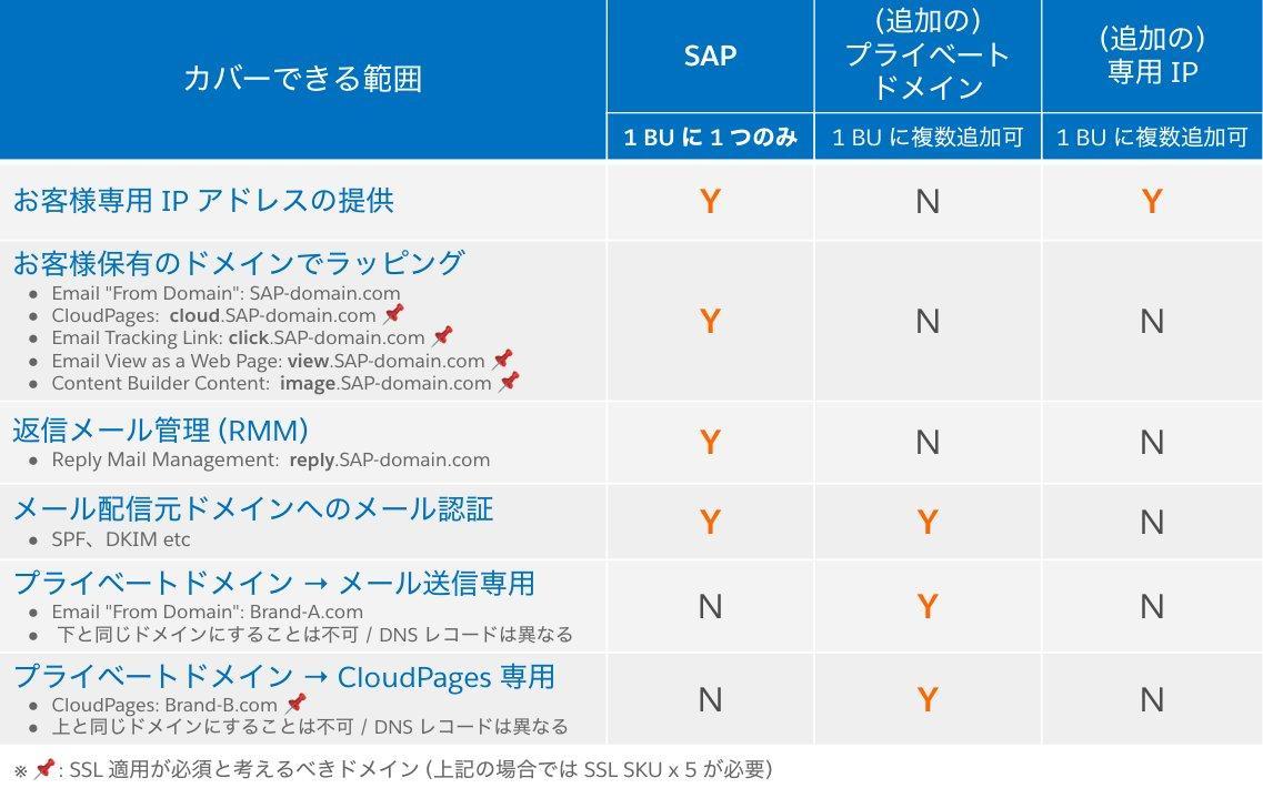 - どの BU に対し、どの Sender Authentication Package (SAP) ドメインを割り当てるか