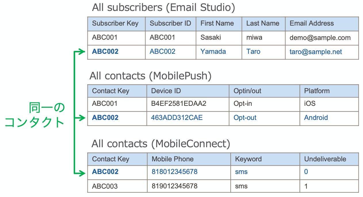 - 🌵Note: プッシュ通知などの用途でモバイルアプリに MobilePush SDK を実装した場合、SDK コンフィグレーションを通じて特定の MID と紐づく連携となる。よって、プッシュ関連コンタクトのレコードを BU 間での右から左に移行させることは不可となる。