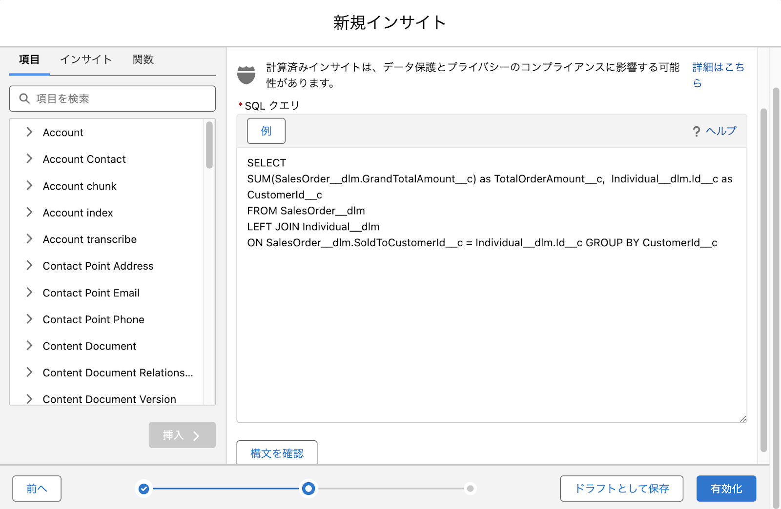 作成方法などの詳細は「Help:SQL を使用した計算済みインサイトの作成」をご参照ください。