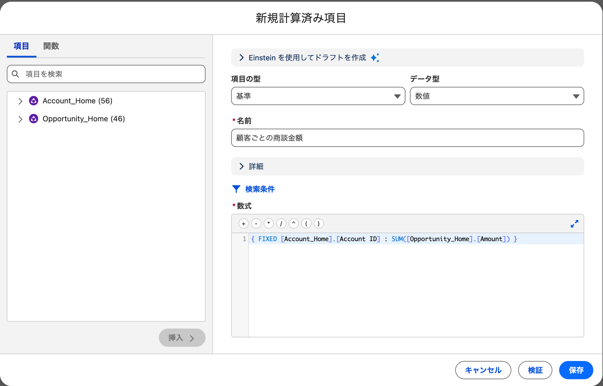 本記事では手動で計算済み項目を作成しましたが、Einsteinを使用して計算済み項目を作成することも可能です。詳細はHelp:Einstein を使用した計算済みフィールドの作成を参照ください。