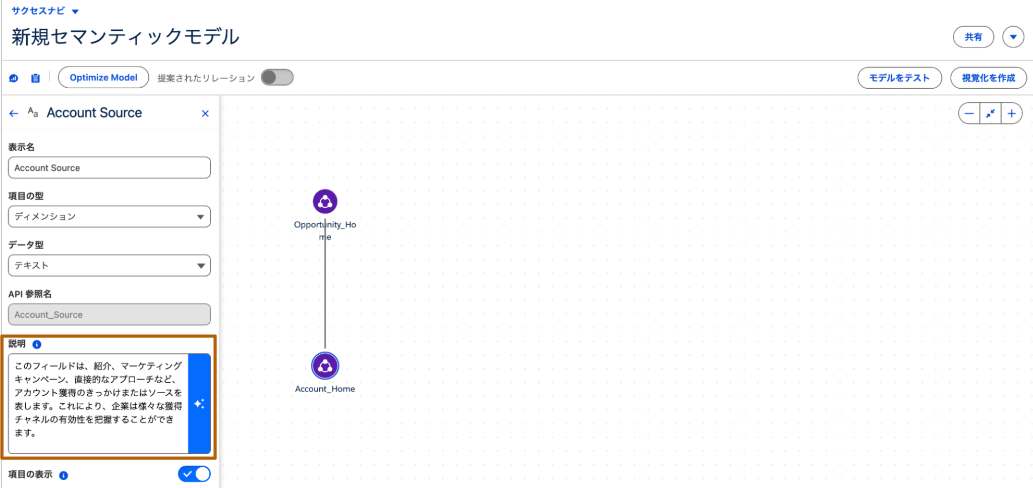 セマンティックモデルの有効化
