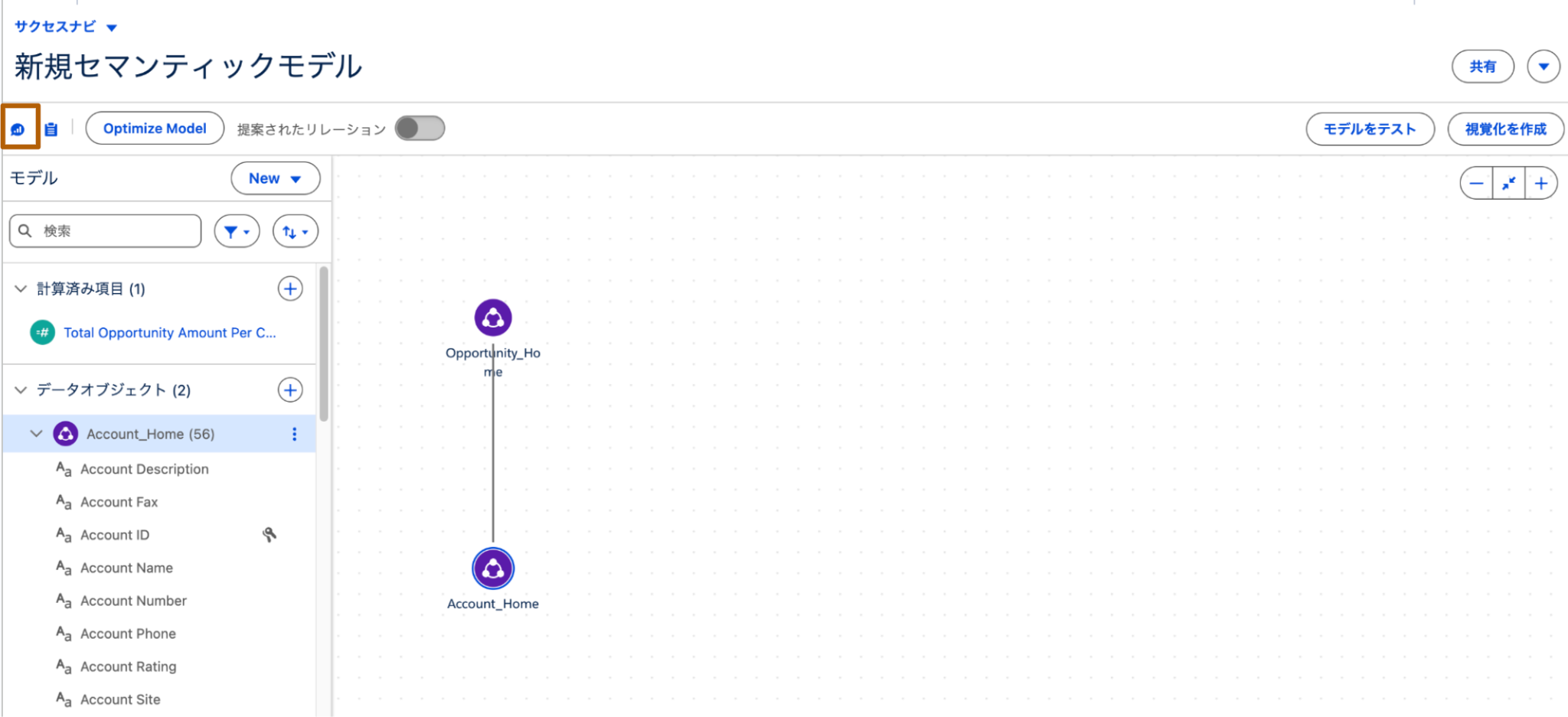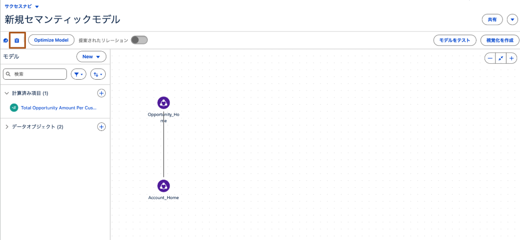 ※以下はセマンティックモデルビルダー上に遷移した状態から解説します。セマンティックモデルビルダーへの遷移方法については、セマンティックモデルでデータ統合するを参照ください。