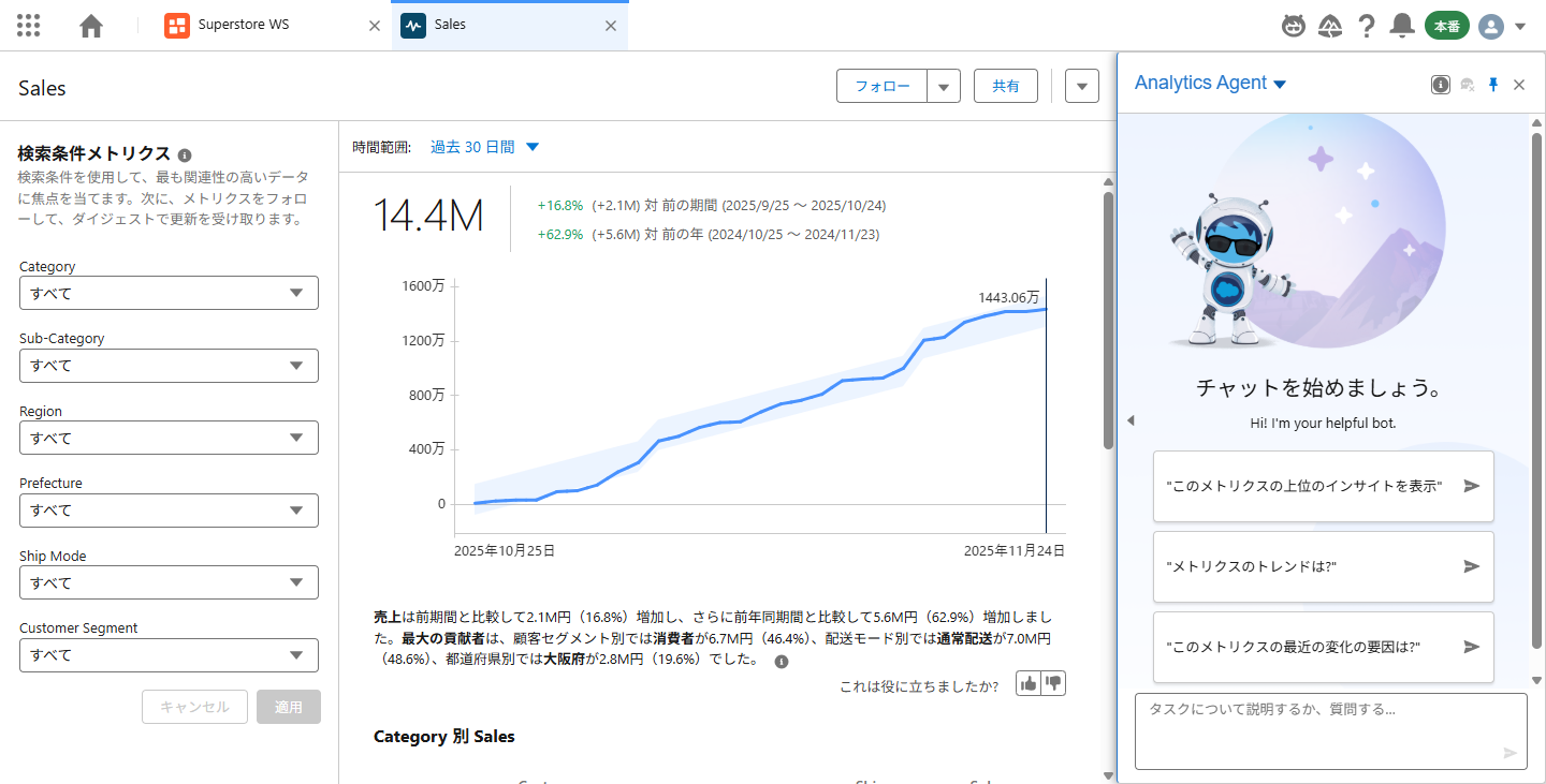 この記事では、Tableau Next におけるメトリクス機能についてご紹介します。