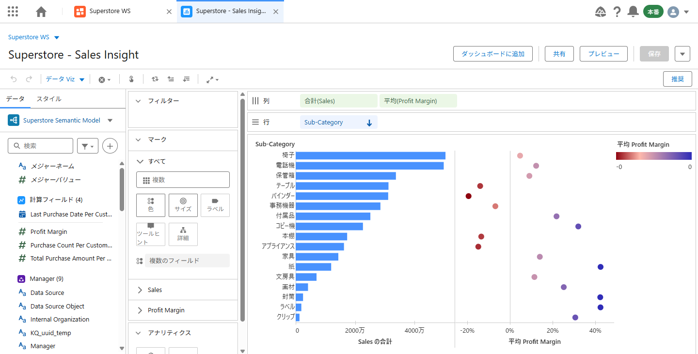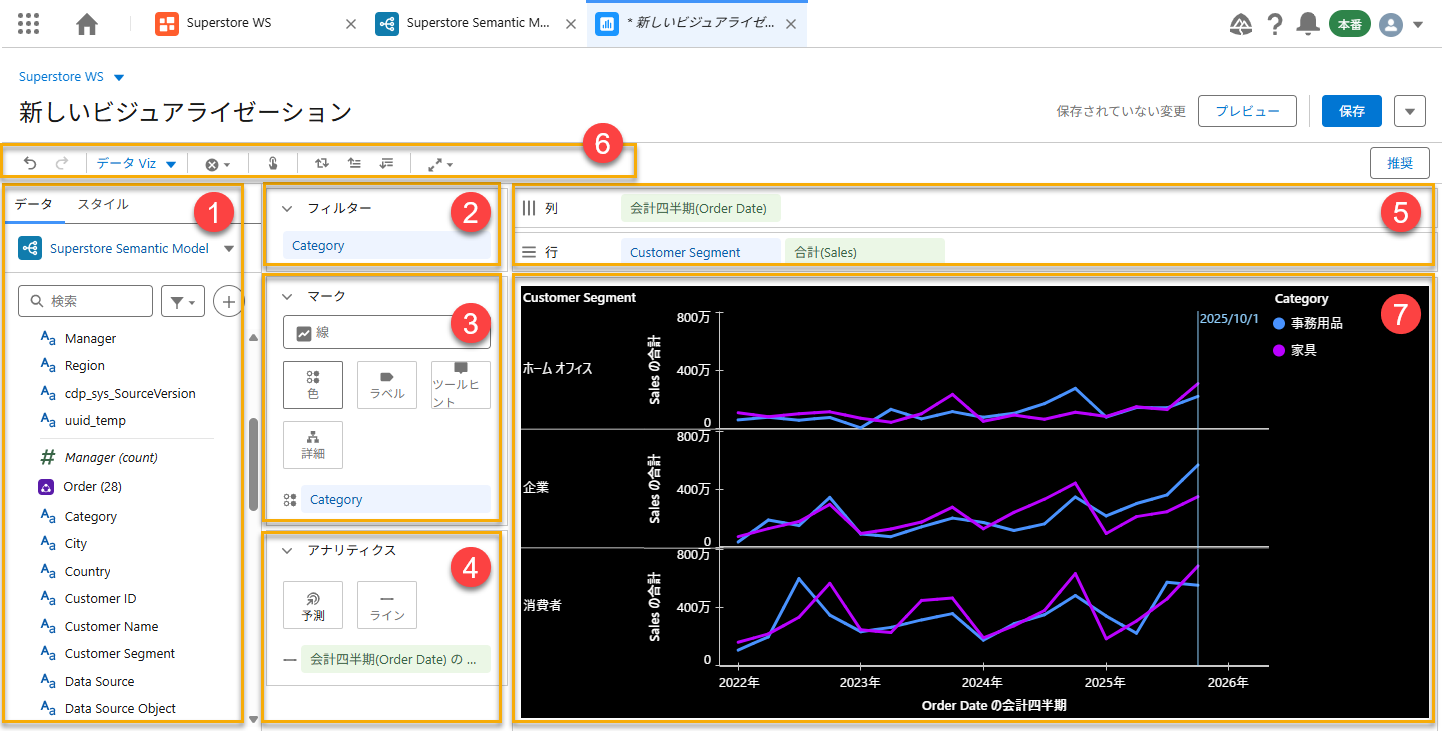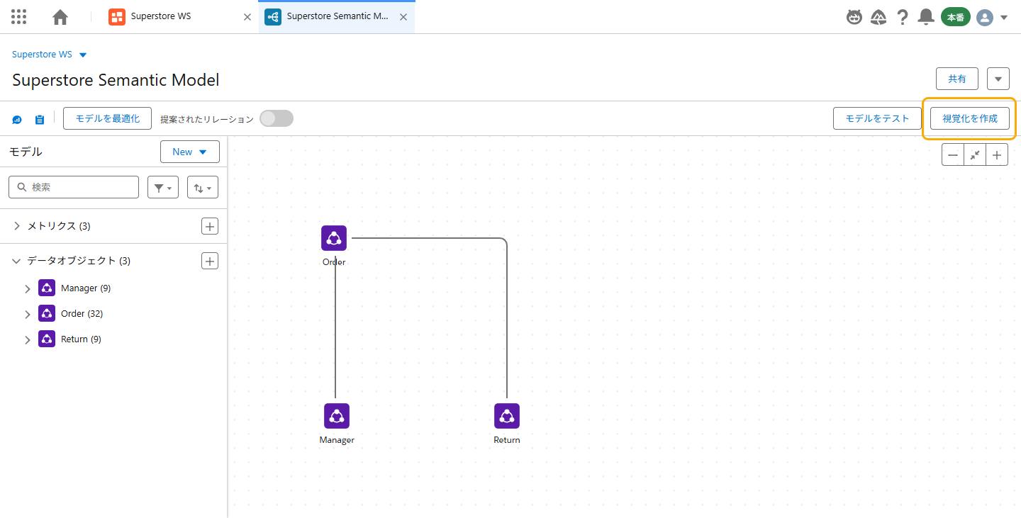 ビジュアライゼーションは、Tableau Next のセマンティックモデルから作成できます。