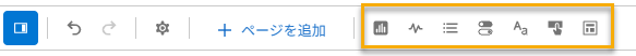 ダッシュボードにエレメントを追加するには、ツールバーのボタンをクリックして、追加したいエレメントを選択します。エレメントには様々な種類があります。