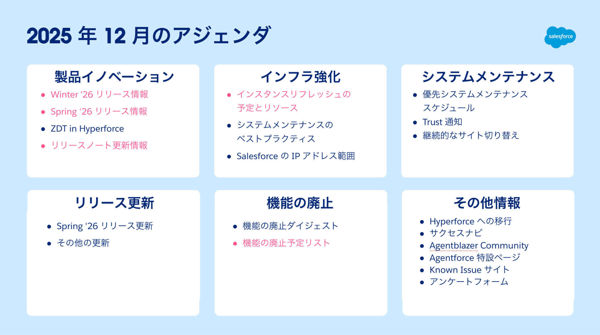 本記事は「Salesforce の運用に関するお知らせ」の 12 月号となります。