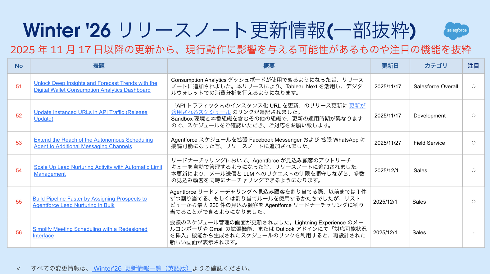 まずは、Winter ’26 リリースノートの更新情報です。