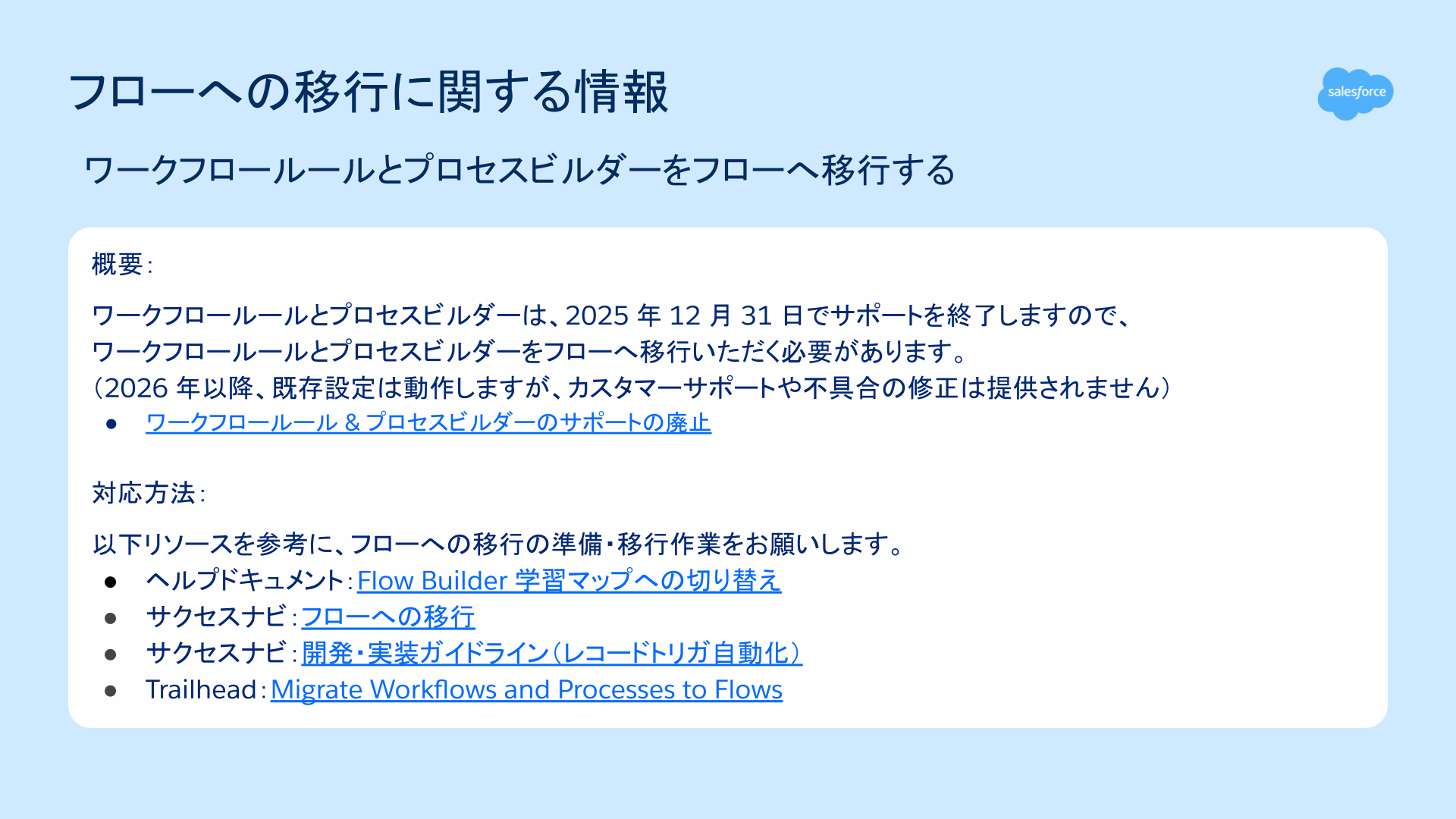 ワークフロールールおよびプロセスビルダーのサポート終了日である 2025 年 12 月 31 日が近づいてまいりました。