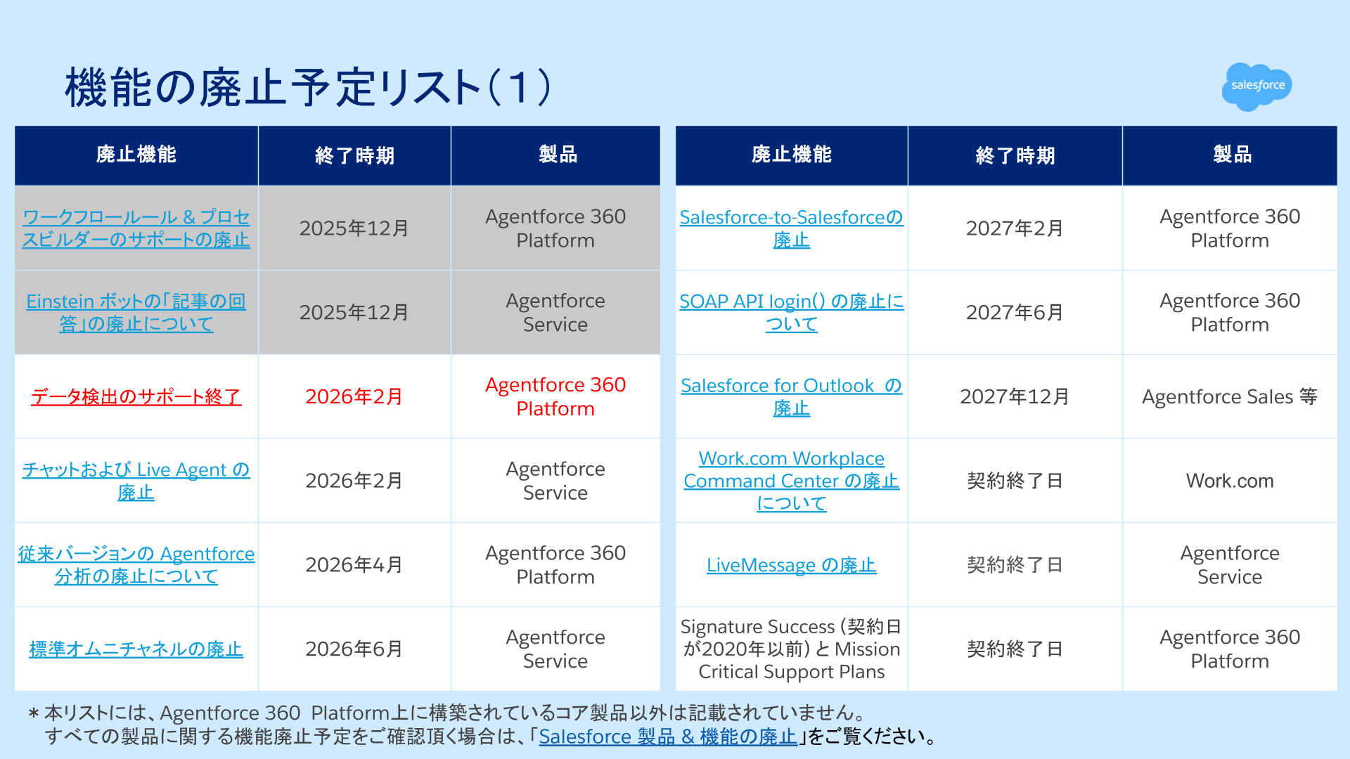 - Salesforce コア製品に関する重要な技術情報