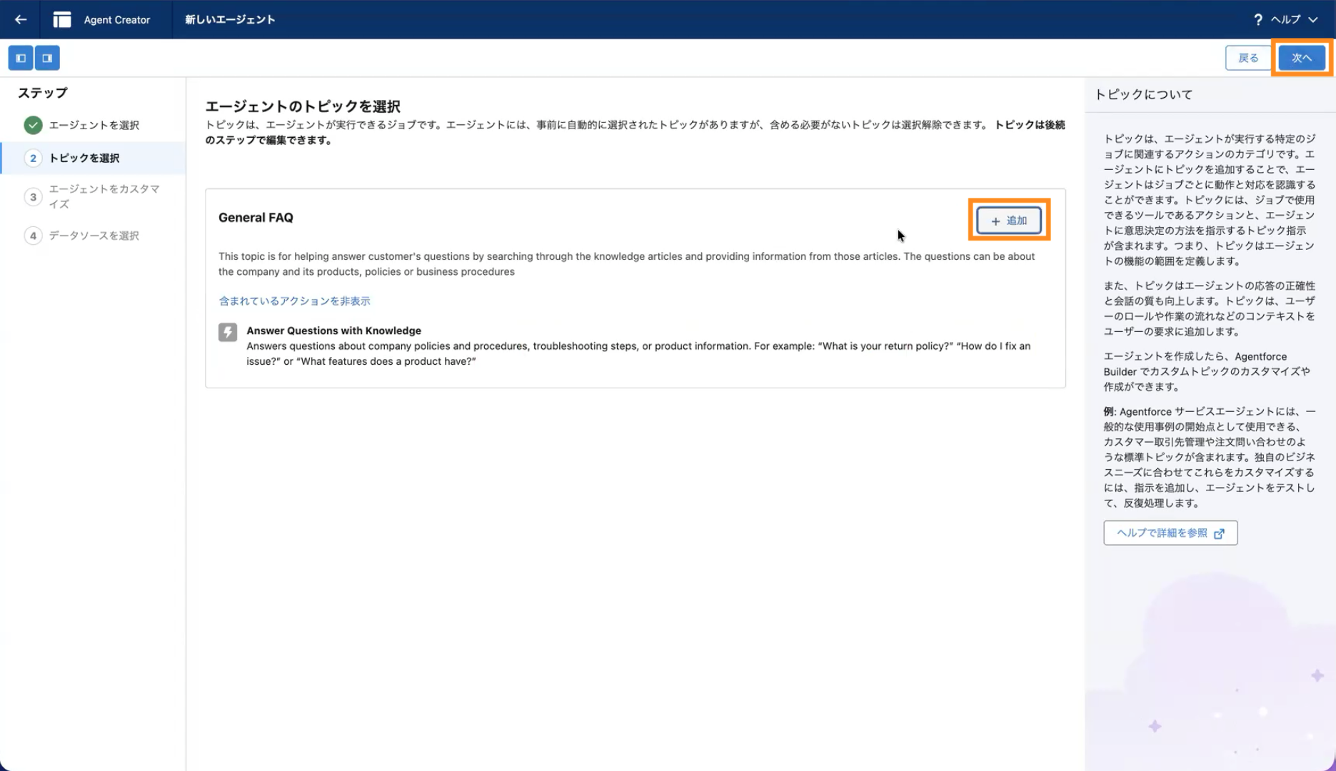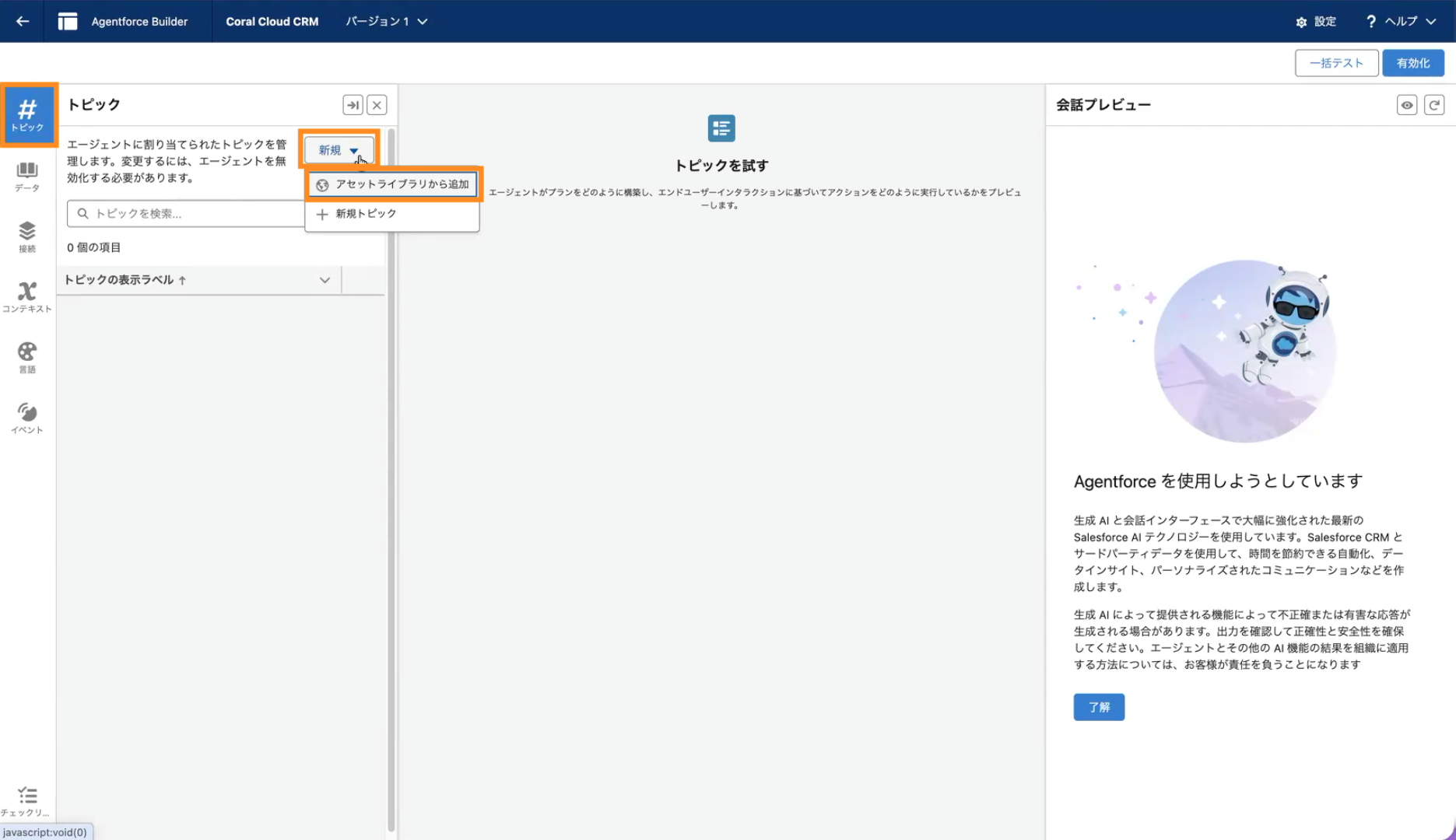 2. エージェントにトピックを追加する