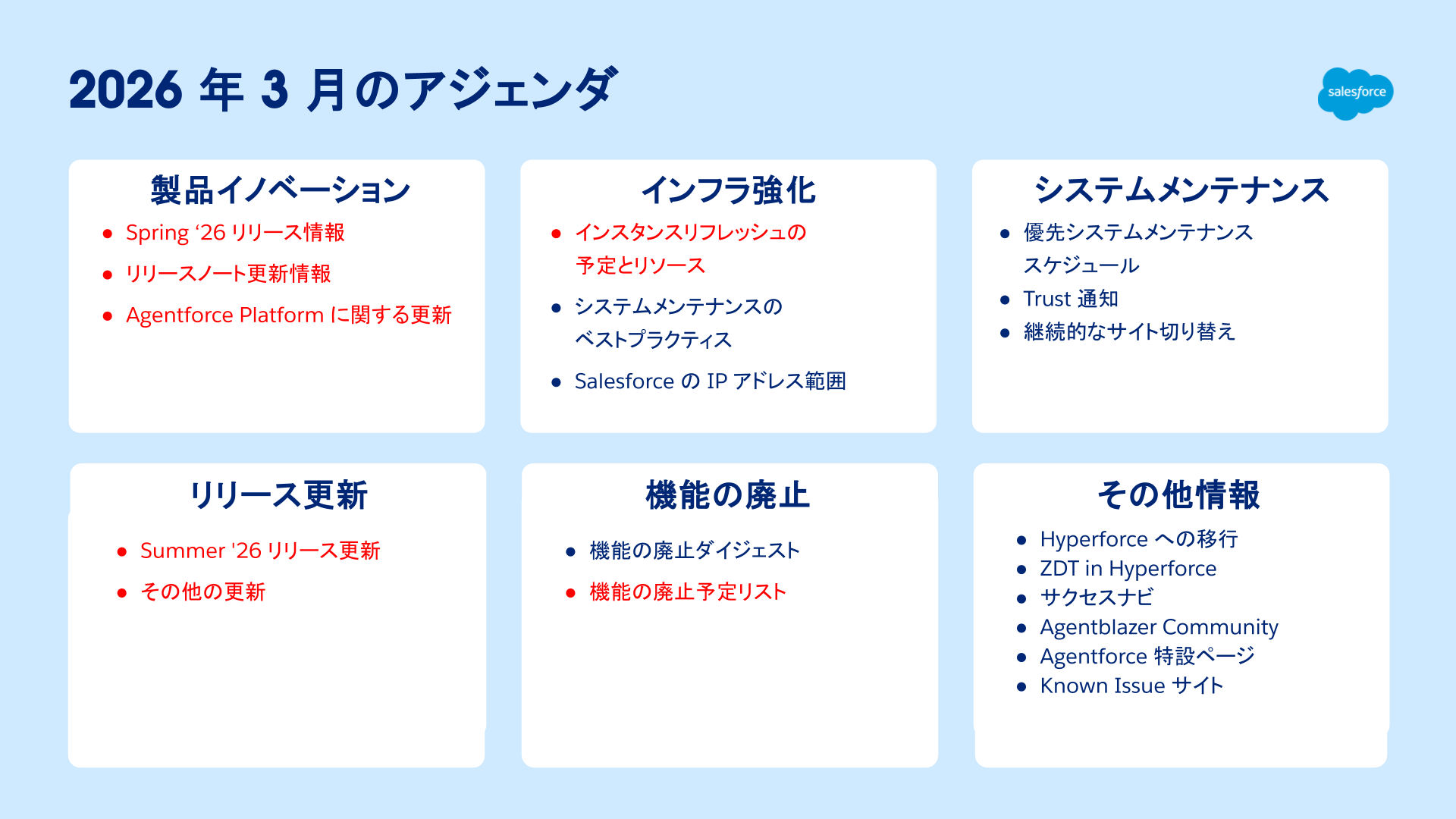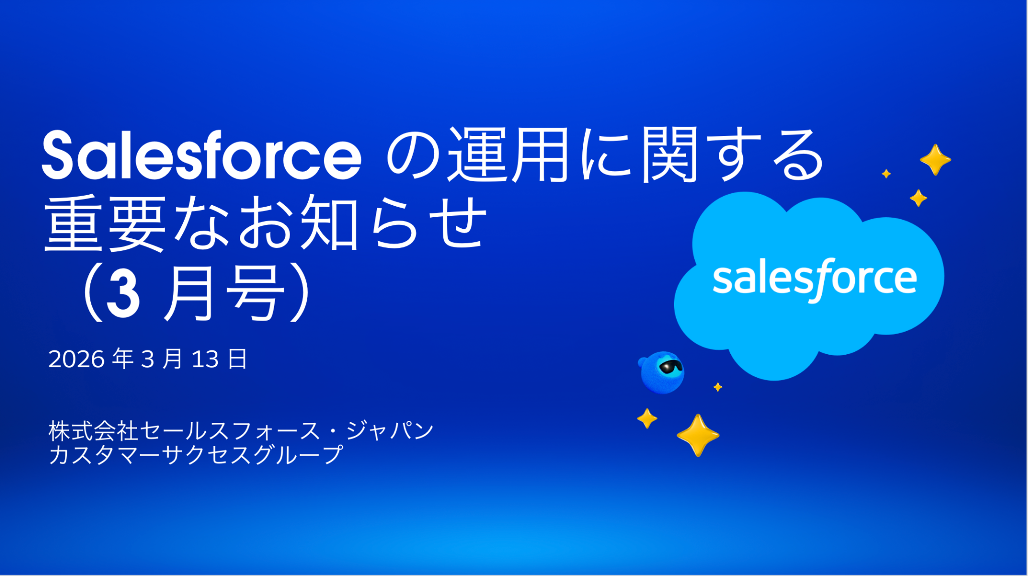 本記事は「Salesforce の運用に関するお知らせ」の 3 月号です。