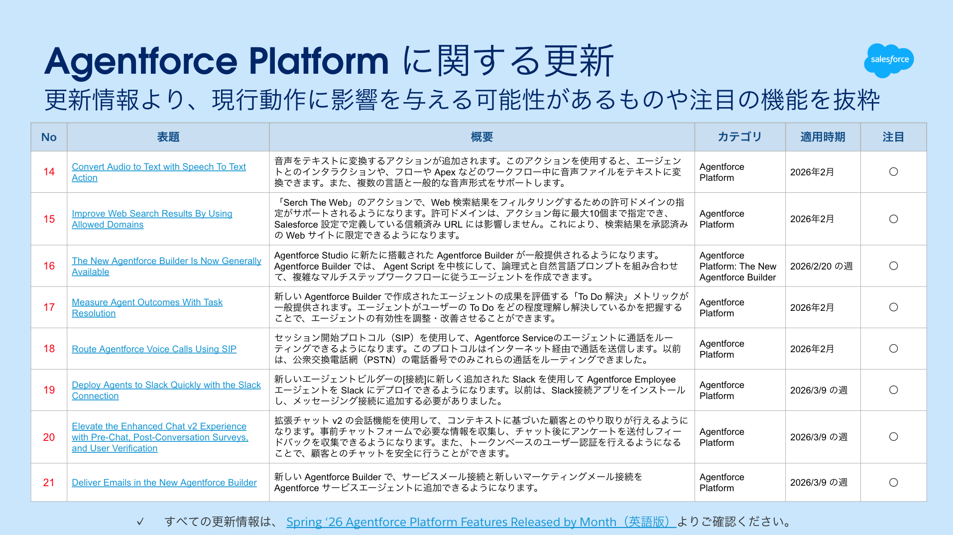No.14 〜 No.21までは、Agentforce Platform に関する情報です。