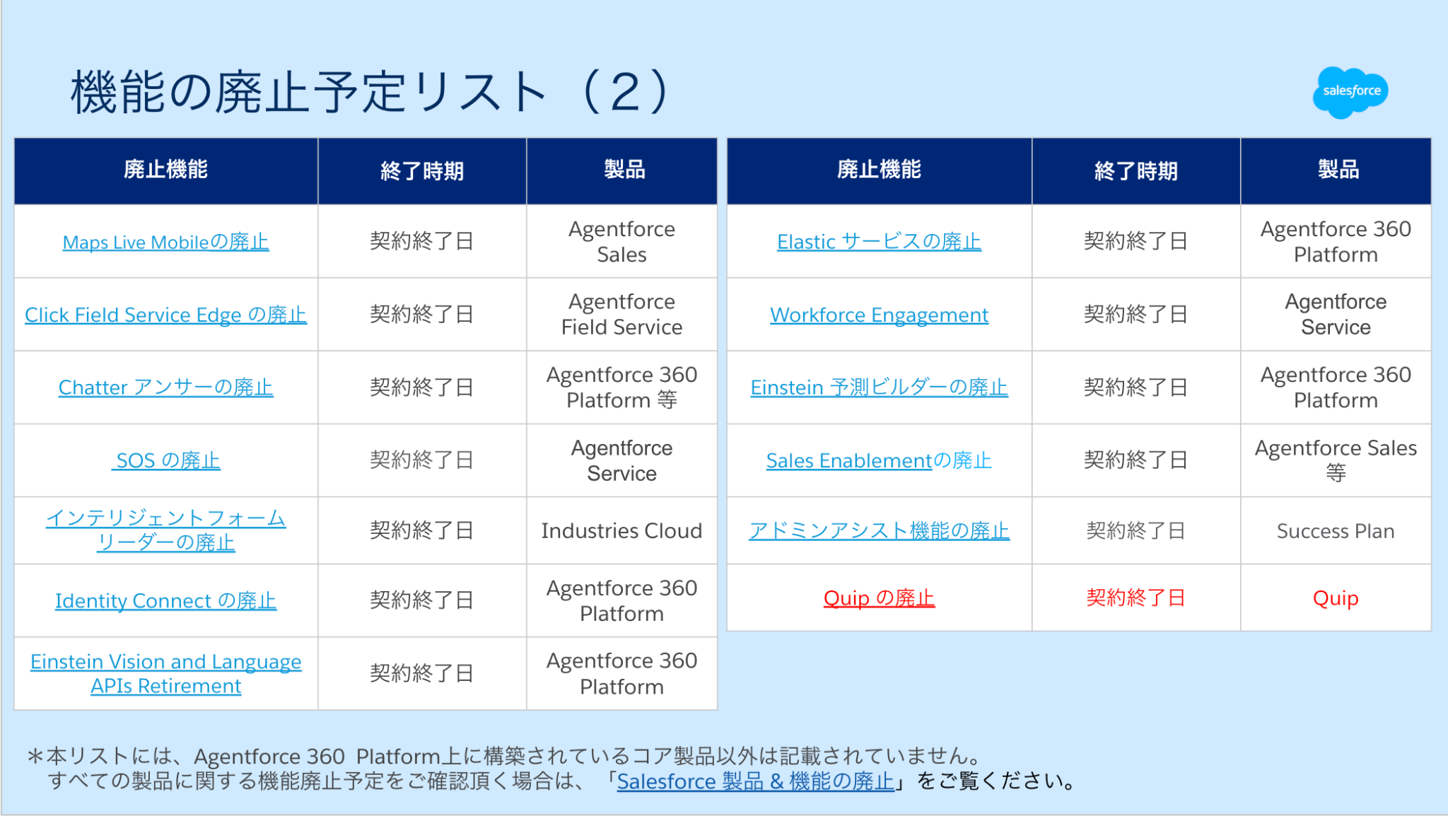 Slack や Agentforce の機能により現行の Quip のユースケースにどのように対応できるか、ご確認いただくことをお勧めします。