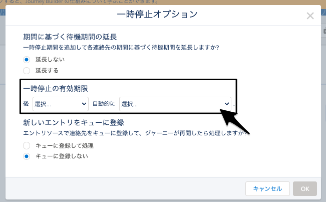 ジャーニーを一時停止する際に「一時停止の有効期限」を意図的に設定するように、デフォルト値の設定を削除しました。この変更によって、意図しない一時停止期間が設定されることを回避します。